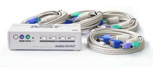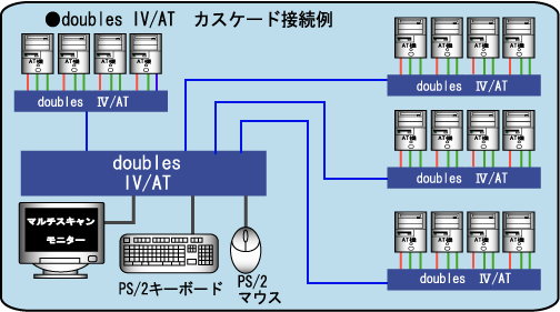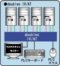 4台のIBM PC/AT互換機を一つのキーボード、マウス、モニターで切り替えて使用できます。